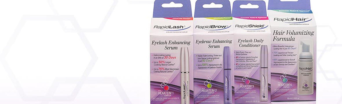 The award winning Rapid Range of RapidLash®, RapidBrow®, RapidShield™ and now RapidHair® enhances the appearance of lashes, brows and hair giving you maximum eye appeal and fabulous hair! Achieve longer-looking, more voluminous-looking lashes with RapidLash®, fuller and thicker-looking eyebrows with RapidBrow®, protect, condition and define your lashes with RapidShield™ and achieve thicker, fuller looking hair with RapidHair™. With the exclusive Hexatein™ Complex, these products help to strengthen, hydrate, condition and protect your natural lashes, brows and hair.